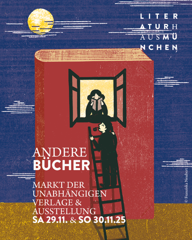 In Kooperation mit dem Bayerischen Staatsministerium für Wissenschaft und Kunst stellen wir an einem GEMEINSCHAFTSTAND außerdem vor: BAYERNS BESTE INDEPENDENT BÜCHER 2025: BALAENA Verlag // edition buntehunde // Gecko Kinderzeitschrift // Hagebutte Verlag // hochroth verlag // KRACHKULTUR bei Weissbooks // MaroVerlag // Schillo Verlag // starfruit publications // Transit Verlag